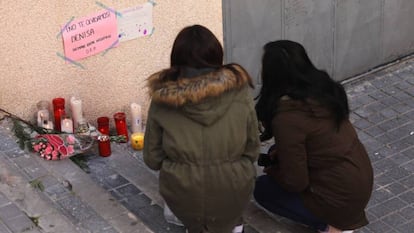 Cinco amigas de Denisa se abrazaron a las puertas de la sala en la que se velaba el cuerpo. La mayoría, menores, como la joven asesinada, que acudían junto a sus madres para dar el pésame a los allegados de la víctima. Los vecinos y las amigas de Denisa levantaron un altar en el lugar donde se cometió el crimen: velas blancas y rojas que colocó el padre de la joven a primera hora del lunes. Junto a estas, mensajes dedicados a la víctima pegados en la fachada también copaban la puerta del local donde se cometió el crimen.