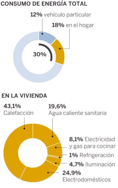 Pocas personas dudan ya de la magnitud del problema al que se enfrenta la humanidad debido al calentamiento global por la emisión de gases de efecto de invernadero (GEI), que proceden en un 90% de la quema de combustibles fósiles y de la industria. Los datos son contundentes: en 2017 se alcanzó un récord de 53,5 gigatoneladas de CO2 equivalente, con un aumento de 0,7 gigatoneladas respecto a 2016 y la tendencia al alza continua. Entre estos gases, el dióxido de carbono (CO2) es el responsable de dos tercios de las emisiones y, por lo tanto, el enemigo número uno a batir reduciéndolo a niveles que puedan absorber los océanos, el suelo y los bosques. En España, el sector residencial es el responsable de aproximadamente el 30% del consumo energético total, repartiéndose entre el hogar (18%) y el transporte con vehículo particular (12%). Los políticos son actores principales en esta batalla y está en su mano impulsar medidas imprescindibles como la implantación de energías renovables, pero el ciudadano también cuenta con opciones para reducir la huella de carbono que provoca con su actividad diaria y estilo de vida.