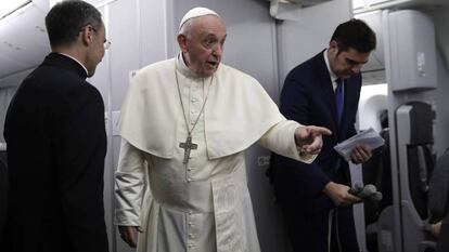 Las ruedas de prensa con el papa Francisco a 37.000 pies de altura siempre son una incógnita. Algunos días, cansado por el viaje, esquiva las preguntas clave sobre el Vaticano y pide que se le interrogue sobre anécdotas del periplo. Otras, como el domingo, no tiene inconveniente en entrar al trapo con soltura en los asuntos más espinosos. Tras cuatro días en Panamá en la Jornada Mundial de la Juventud (JMJ) y a las puertas de una histórica cita en el Vaticano para tratar la cuestión de los abusos con los presidentes de todas las conferencias episcopales, Francisco aceptó convertir en el tema central de su intervención la herida por la que sangra la Iglesia. Además, descartó rotundamente que vaya a permitir el celibato opcional para sacerdotes.