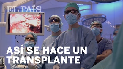 A mediodía, la segunda vuelta. El paciente ya está dormido. Sobre la camilla, el robot Da Vinci con sus cuatro brazos como patas de araña alza la voz: “Da Vinci está listo”. “Los demás también”, ríe una enfermera. El trasplante robótico se hace en el Clínic desde 2015. Es una técnica más precisa y limpia: solo incisiones para introducir los brazos, también en el costado, y un pequeño corte para meter el órgano.