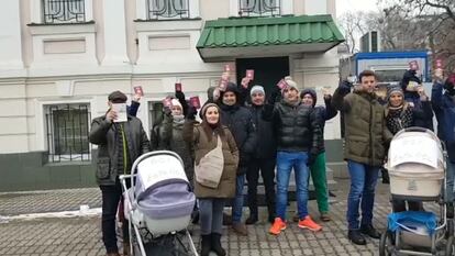Varias familias aguardan desde diciembre en la capital ucrania para completar el proceso de inscripción de menores. El miércoles, hubo al menos tres que recibieron la negativa a inscribir a los niños. Este jueves les ha sido denegada a otras tres, según cuentan los afectados. Interfertility, agencia con la que varias parejas cerraron el contrato, estima que hay unas 30 parejas en la capital de Ucrania pendientes de una solución.