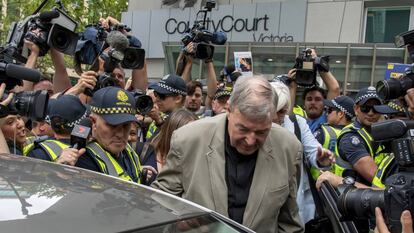 Los pecados del cardenal australiano George Pell, quien fuera el número tres del Vaticano, tienen ya un castigo concreto. El antiguo responsable de las finanzas vaticanas ha sido condenado este miércoles a seis años de prisión por cinco delitos de pederastia, uno por penetración oral, contra dos menores que pertenecían al coro de la catedral de Melbourne. El todavía purpurado ha recurrido el fallo y su entorno considera que tiene muchas probabilidades de salir exculpado en la segunda instancia. Pero el juez Peter Kidd del Tribunal del Estado de Victoria subraya ahora que deberá cumplir tres años y ocho meses de la condena antes de pedir la libertad condicional. Es decir, a partir de octubre de 2022.