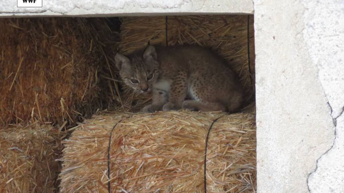 La lince Odrina está criando a sus dos cachorros entre las balas de alfalfa de un pajar en desuso pero bien conservado situado en la provincia de Ciudad Real, en Sierra Morena, donde ella vino al mundo hace dos años cuando su madre, esta sí nacida en cautividad, buscaba un refugio. "La elección de un edificio es muy poco habitual, lo normal es que intenten aprovechar troncos huecos como hacen en Doñana o agujeros entre las piedras", explica Ramón Pérez de Ayala, responsable de WWF del proyecto LIFE Iberlince. Es la primera vez que un ejemplar de la especie nacido en libertad tiene una camada en esta región.