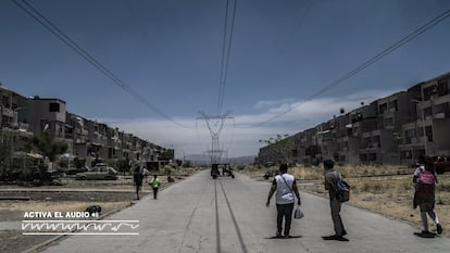 Guillermina Sánchez ni se rinde ni piensa mudarse: “Es mi patrimonio; tengo que luchar hasta el final”. Uno de los bloques abandonados del fraccionamiento sirve desde hace un mes de cuartel para un pelotón de militares que patrulla la zona. El Ayuntamiento ha repintado sus apartamentos y colocado cortinas azules y verdes, un toque alegre entre tanto cemento. El despliegue ha insuflado ánimos a Sánchez. “¿Dónde quedó el sacrificio? A lo mejor algún día se habita”, dice, “aunque quizás no veo cuándo”.