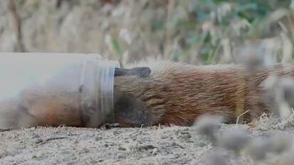 Así salvaron al zorro con la cabeza atrapada en un bote de plástico
