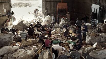 Cada día llegan unas 15.000 toneladas de basura al Reciparque junto a 8 de Mayo. Son los residuos sólidos generados por casi 20 millones de personas. Bella Flor recicla unas 140 toneladas mensuales. Hay otras diez cooperativas en la zona “y hay trabajo para otras cien”, dice Ernesto Lalo Paret, jefe de los cirujas. “Nuestra tarea consiste en reducir todo lo posible el montón de basura que acabará enterrado”, añade. Se trata de una tarea minuciosa. Cada bolsa de basura se abre con cuidado (de ahí el término ciruja, por el parecido con la cirugía) y el contenido se esparce sobre una cinta transportadora. “Vendemos el plástico, por ejemplo, a dos pesos por kilo, si está semitransformado, o a 50 céntimos”, explica Paret. Eso supone que para ganar un dólar hay que reunir, al mejor precio, casi 50 kilos de plástico.