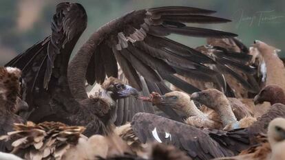 La solución, añade Ramón Santalla, secretario de Ganadería de la Unión de Pequeños Agricultores y Ganaderos (UPA), consistiría en permitir dejar a los animales muertos en el campo “como se hacía antes de la crisis de las vacas locas” o por acotar más espacios para muladares —comederos cerrados en los que se deposita carroña para las necrófagas— y mejorar su gestión. En la actualidad, lo más habitual es contratar un seguro, que recoge el animal cuando muere para incinerarlo. “A excepción de los cadáveres que se dejan en zonas autorizadas por las comunidades autónomas, pero son los menos”, sostiene. Además, existe una normativa para usar los muladares que exige un permiso previo y cumplir unos requisitos sanitarios. “El problema es que no se ha aplicado bien, algunas comunidades han aprobado los muladares hace poco y otras como Madrid, Galicia o Murcia ni siquiera lo han hecho todavía”, protesta Nicolás López, responsable de especies de SEO/BirdLife. En 2018, se estimaba que existía en España una colonia de buitre leonado de 31.000 parejas, un 17% más que hace una década.