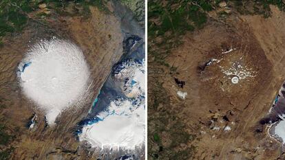 Fuera de las regiones polares, donde se concentra el 98% del hielo existente en la Tierra, hay unos 215.000 glaciares, según un estudio reciente de la revista Nature que cita el geólogo Jerónimo López. Los más frágiles son los pequeños glaciares de montaña, como era el Okjökull (nombre islandés del glaciar desaparecido). “En los Alpes ha habido una enorme pérdida de hielo, igual que en el Himalaya y los Andes”, explica este profesor en la Universidad Autónoma de Madrid, experto en polos y hielo. Un caso especialmente preocupante es el Kilimanjaro, donde las predicciones concluyen que hacia 2050 es probable que no quede ningún glaciar, añade.