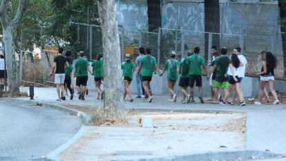 Jueves noche. 20 estudiantes se reúnen en un descampado cerca de la ciudad universitaria de Madrid para curtir a los novatos. Los roles están claros y se distinguen con facilidad. Los veteranos: bien vestidos y armados con cartones de vino barato. Los novatos: disfrazados y borrachos. En un rincón, uno de ellos vomita de rodillas y a su alrededor cinco jóvenes le gritan desde arriba. “Hasta que no veamos la cena en grumos, no vas a parar de beber”, chilla ronco un joven rubio.