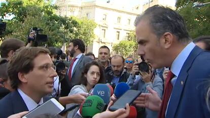 El partido de extrema derecha Vox lleva varios meses intentando desarmar el consenso político en torno a la lucha contra la violencia machista. Desde que irrumpió en el tablero político español, varios de sus miembros se han referido a ella como violencia intrafamiliar. "La violencia de género es una gran mentira", afirmaba el portavoz de este partido en el Congreso, Javier Ortega Smith, el pasado 9 de septiembre. Y no solo Vox, el alcalde de Madrid y miembro del PP, José Luis Martínez-Almeida, se refirió al asesinato de una cirujana a manos de su pareja el pasado 17 de agosto con eufemismos como "desgraciado acontecimiento", "suceso" o "acontecimiento luctuoso". El último capítulo se produjo este jueves cuando Vox boicoteó el minuto de silencio en homenaje a la víctima más reciente de violencia machista llevando una pancarta en la que se leía: "La violencia no tiene género". Almeida y Ortega Smith entraron entonces en una discusión pública acerca del uso de una pancarta paralela.