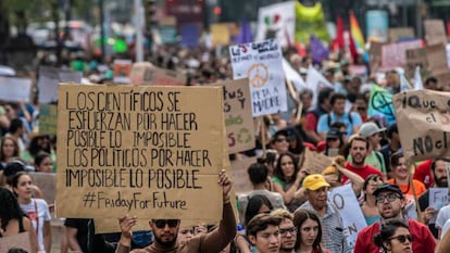 El protagonismo de México en la huelga global contra el cambio climático no es casual. Es también el país latinoamericano que más dióxido de carbono y el undécimo en el mundo, con más de 490 toneladas métricas al año, según el Atlas Mundial del Carbono y el grueso de las mediciones internacionales. Los jóvenes que pertenecen a Fridays For Future también han sido especialmente críticos de la política ambiental del Gobierno de Andrés Manuel López Obrador, que ha apostado por megaproyectos para detonar el desarrollo y el impulso a las energías fósiles, con la petrolera estatal (Pemex) a la cabeza, pese a los cuestionamientos de activistas, pueblos originarios y académicos. "En México no hay una estrategia clara para combatir el cambio climático", sentencia Clara Martínez, de 22 años, una de las organizadoras mexicanas de la primera protesta mundial convocada por Thunberg en marzo pasado, que congregó a unos 200 asistentes. Este viernes, Edith Ruiz, de 19 años, profundizaba en la misma línea que Martínez. "Nuestro Gobierno", decía en la marcha, "tiene que cambiar sus políticas, nos estamos acabando el planeta, es un momento crítico y todo mundo debería estar aquí, marchando".