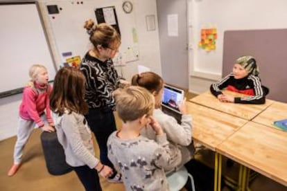 En finés los verbos no se conjugan en futuro, lo que da una idea de su actitud ante la vida. Su lema es “puedo hacerlo y voy a hacerlo”. Porque el finlandés es un pueblo resistente, el país primero estuvo dominado 650 años por los suecos y después otros 110 por los rusos. Sus habitantes tienen interiorizado que deben ser autosuficientes y sus escolares lo son gracias a un modelo sin apenas deberes y evaluaciones —envidiado por sus brillantes resultados académicos— que sufre una constante transformación y que ahora les da más poder en el aula y responsabilidad en su progresión académica. Ellos deciden qué quieren aprender y de qué forma. ¿Por qué tocar un modelo triunfador? “El mundo no para y nosotros tampoco”, se sorprenden de la pregunta la pedagoga Ilona Taimela y Pia Pakarinen, vicealcaldesa de Helsinki y encargada de proporcionar a los centros de la capital medios y profesores. “Las familias cuestionan que cambiemos algo que no está roto, pero hay que acomodarse a las necesidades. Helsinki tiene mejores resultados que Singapur pese a que el 20% de los alumnos viene de otro país”, se enorgullece Pakarinen.