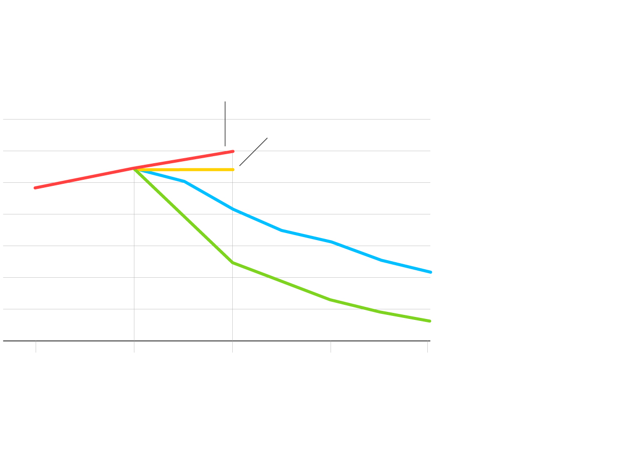 Cómo deben caer las emisiones para cumplir con la meta de 2ºC y 1,5ºC