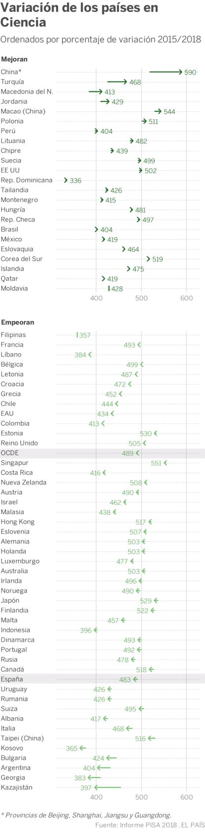 En el lado inverso de la tabla se sitúan seis países: Australia, Corea, Finlandia, Holanda, Islandia y la República Checa, que registraron un rendimiento en declive en las tres partes del test.
