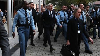 Michael Bloomberg, el multimillonario exalcalde de Nueva York y candidato a las primarias del Partido Demócrata. Y Harrison Ford, o sea, Han Solo, Indiana Jones y Rick Deckard en persona atravesando la Zona Azul de Ifema entre teléfonos móviles levantados, gritos de “oh, my God!” y excepcionales medidas de seguridad. Qué más da lo que dijese, si el golpe propagandístico había sido rápido (convocatoria de urgencia esta mañana) y fulminante a cargo de quien mejor puede enfrentarse a Trump —y también fue presidente en el filme Air Force One— en el peliculero terreno que a él le gusta: el de los héroes de acción.