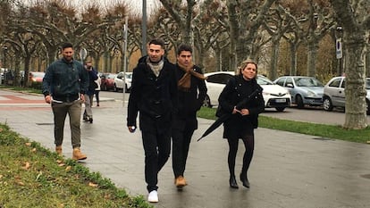 A la vista han ido los tres jugadores: Carlos Cuadrado, Lucho, de 24 años; Víctor Rodríguez, Viti, de 22, y Raúl Calvo, de 19. También las partes que han participado en el proceso, es decir, las acusaciones y el ministerio fiscal. Además, algo más de medio centenar de personas se ha concentrado a primera hora de la mañana a las puertas del palacio de Justicia de Burgos, sede de la Audiencia Provincial, para apoyar a los condenados bajo gritos de "yo sí los creo" y "no prisión sin pruebas". Frente a ellos, unas 15 personas se ha concentrado en apoyo a la víctima menor de edad bajo gritos de "no estás sola" y "yo sí te creo". Agentes de la Policía Nacional y Local se han desplegado ante el palacio de Justicia para evitar altercados.