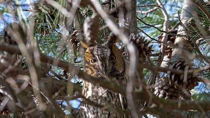 El abogado del club de fútbol asegura que el inicio de la ampliación sin licencia se debió a un malentendido. El municipio les permitió solo actuaciones de seguridad, “pero nosotros pensábamos que al contar con una declaración responsable estaba concedido el permiso para ampliar la tribuna y las gradas generales”. Después de las denuncias, el SD Huesca va a esperar a que los búhos se dispersen para proseguir con los trabajos, que van a incluir la tala de algunos de los pinos donde existen nidos e inverna la colonia. “Solo hemos acometido el 8% de las obras y estamos modificando el proyecto para incluir mejoras ambientales como un observatorio ornitológico”, comenta Luis Sanclemente, gerente del club. El Instituto Aragonés de Gestión Ambiental (INAGA) ha emitido una resolución favorable condicionada que permite la actuación con restricciones como que los árboles se corten antes del inicio del periodo de reproducción de la especie para evitar que los nidos estén ocupados. Se prevé que la tala afecte a unos 40 ejemplares ubicados junto a la fachada este del estadio, aunque el número final no se conoce todavía, especifica el INAGA. Lera se opone completamente a esa solución porque significa destrozar el hábitat de los búhos. “Consideramos que el hábitat de una especie lo es siempre esté o no esté presente en algún momento”, aclara. Pone como ejemplo a las grullas: "Ahora que han emigrado al norte, no se nos ocurre destruir su hábitat en la dehesa extremeña porque volverán”.