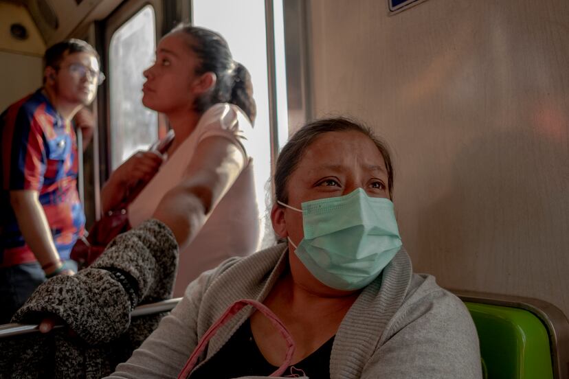 Las manos redondas de Patricia Juárez Camacho, de 47 años, abren nerviosas una bolsa de mascarillas quirúrgicas en el andén. Mira a su alrededor y señala: “Me da pena. Ya verá, nadie las lleva”. Al abrirse las puertas, la observan unos 50 pasajeros cansados, con surcos oscuros bajo los ojos, pegados hombro con hombro, las manos aferradas a las barras metálicas, con la frente húmeda del sudor que ya traen y el nuevo, ese que se traspira en el Metro de Ciudad de México, porque la única ventilación que hay es la de unas ventanillas abiertas que dejan pasar el aire sucio de los túneles. La mascarilla se pega a la piel, y ahoga. La realidad subterránea de México no sabe de coronavirus, pero sí de supervivencia. Antes incluso de que se desatara la pandemia. Por eso todos miran a Patricia. En este punto de la capital, quien se coloca un cubrebocas es de los pocos afortunados que tiene menos cosas de las que preocuparse.