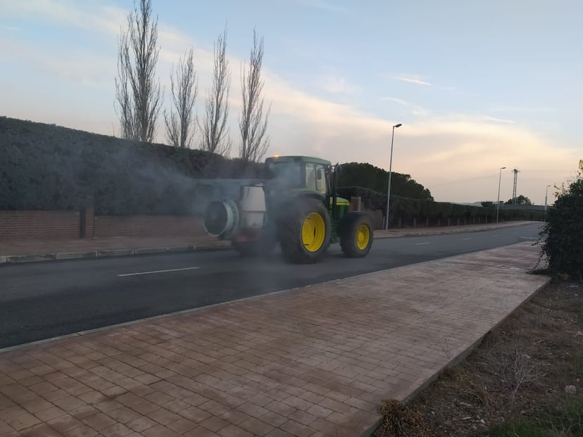 Emilio Martínez, de 54 años, lo hace por su familia y sus empleados. “Si esto se extiende y tengo que cerrar mis instalaciones, dejo a seis personas en la calle. Y tampoco sé qué comería la gente sin nosotros, los agricultores”. Al día, rocía cerca de 2.000 litros de producto, con sus sulfatadoras, normalmente empleadas para esparcir el herbicida, y atomizadores, desde que empezó esta tarea el domingo, en el municipio de San Javier (Murcia). Cinco voluntarios desinfectaron las vías públicas, los parques y los centros comerciales y aparcamientos. “Ojalá pudiéramos hacer más”, concluye.