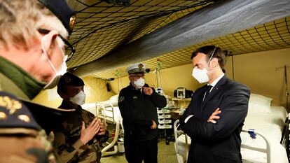 Según ha indicado, se trata de una misión “distinta” de la Operación Centinela creada tras los atentados de 2015 en Francia y que sigue manteniendo a unos 10.000 soldados —3.000 de ellos en reserva— patrullando las calles de todo el país. Aunque no ha precisado el número de uniformados que serán movilizados ni en qué forma concreta, sí ha adelantado el envío de dos portahelicópteros de apoyo a las regiones de ultramar del país. Mulhouse además podría ser un indicativo de lo que puede aportar en materia de logística y equipamiento el Ejército: este instaló esta semana un hospital de campaña sobre el aparcamiento de un hospital de la localidad que deberá ayudar a desahogar a los centros médicos de la región, desbordados con la afluencia imparable de casos graves.