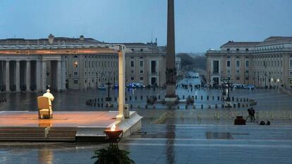 El Papa bendice al mundo por el coronavirus en una plaza de San Pedro totalmente vacía