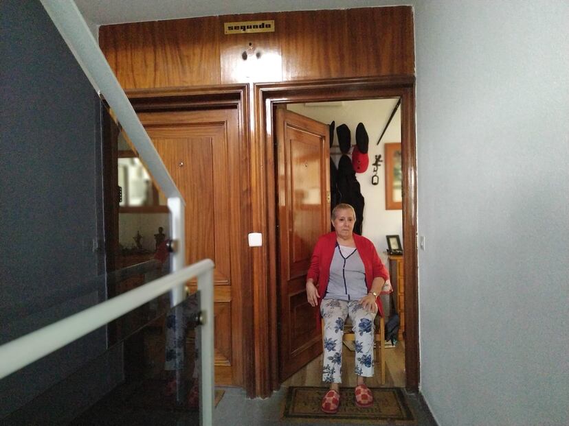 En su nueva rutina interior, dosifica las noticias (“Intento no leer ni ver demasiado, que me angustio”) y se distrae con la telenovela, la bici estática o dando paseos por el pasillo comunitario. Antes de salir, toca el timbre de su vecina: “No abras. Era solo para saber que estás bien”. Cada día, a las ocho de la tarde, se asoma a la ventana del rellano: “Por este lado se escuchan más”, dice.