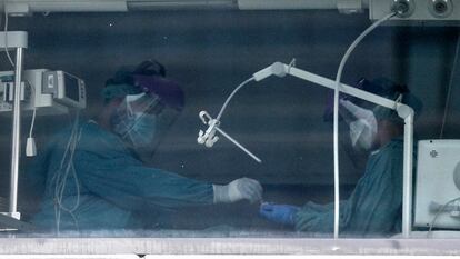 La mayoría de médicos intensivistas consultados defiende que sería más práctico trasladar profesionales de las comunidades con menos necesidades a las más saturadas, en lugar de trasladar a los pacientes en estado crítico, con todos los medios y las precauciones que ello requiere. La Sociedad Española de Medicina Intensiva, Crítica y Unidades Coronarias (Semicyuc) hizo el fin de semana un llamamiento a la movilización de sus socios para que los que tengan menos carga de trabajo acudan a los centros más saturados. Los jefes de servicio están haciendo listas con personal del que podrían prescindir para enviarlo al ministerio y que redistribuya recursos. Sin embargo, fuentes de esta sociedad médica explican que eso no va a cambiar significativamente el panorama. “Las UCI ya estaban muy justas de personal, en ninguna sobra, y serán muy pocas las que puedan poner a médicos o enfermeras a disposición de otros centros”.