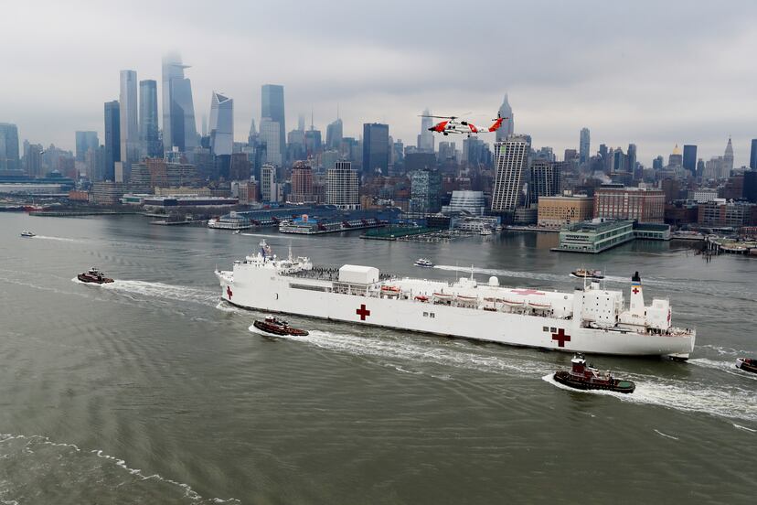 Es el segundo barco hospital de la Marina de la clase Mercy que se pone a disposición de esta crisis sanitaria. El primero, también con una capacidad de 1.000 camas, se encuentra desde este viernes en Los Ángeles para asistir a los hospitales del sur de California, el tercer Estado con más contagios en el país, detrás de Nueva York y Nueva Jersey. La embarcación cuenta con más de 800 miembros de personal médico y de apoyo de la Armada, y más de 70 marineros del servicio civil. Su destino inicial era Seattle, el primer foco de contagios del país, que ya registra 143.667 casos y 2.487 muertes, según la Universidad Johns Hopkins.