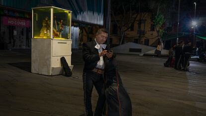 “¿Escuchas este silencio?”, dice Benjamín García llevándose la mano a la oreja. “En mis 27 años trabajando aquí, nunca había visto así la plaza”. García es uno entre decenas de mariachis que se aglutinan estos días sin suerte en la mítica Plaza Garibaldi, en Ciudad de México, en busca de algún turista o borracho despistado al que cantarle alguna canción por varios pesos. Desde que el Gobierno mexicano decretara la emergencia sanitaria el pasado domingo, en este sitio ya solo hay músicos. Como antes, se lanzan a la carrera ante cualquier coche que llega a los filos de la plaza, pero ya no hay clientes. Hace días que no ganan ni un solo peso.