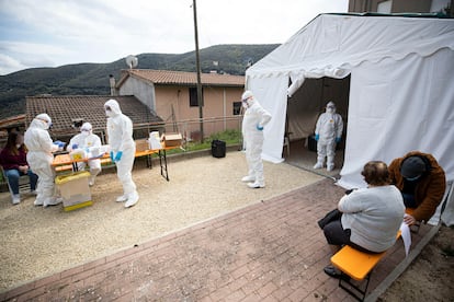 Los ciudadanos de Nerola recibieron al comienzo al equipo de médicos que se desplazó hasta ahí con cierta ansiedad, recuerda el doctor Pierluigi Bartoletti, uno de los encargados del trabajo de campo. “Poco a poco se fue creando una buena relación y se pudo hacer de forma natural. Montamos una tienda al aire libre y realizamos a cada ciudadano las tres pruebas el mismo día para verificar si los reactivos eran fiables”, apunta. El experimento, concluye Vaia, tendrá utilidad a nivel estatal cuando esté completado. “Al juntar las tres pruebas, sabemos si la persona es positiva desde hace mucho tiempo, si está entrando o si está saliendo de la enfermedad. Lo más importante es que nos señala a los negativos que tienen anticuerpos altos y han estado en contacto con el virus. Es fundamental para conocer la población que ha pasado por el virus”, apunta. Y esos, sostiene el Gobierno italiano, serán la vanguardia de la reapertura.