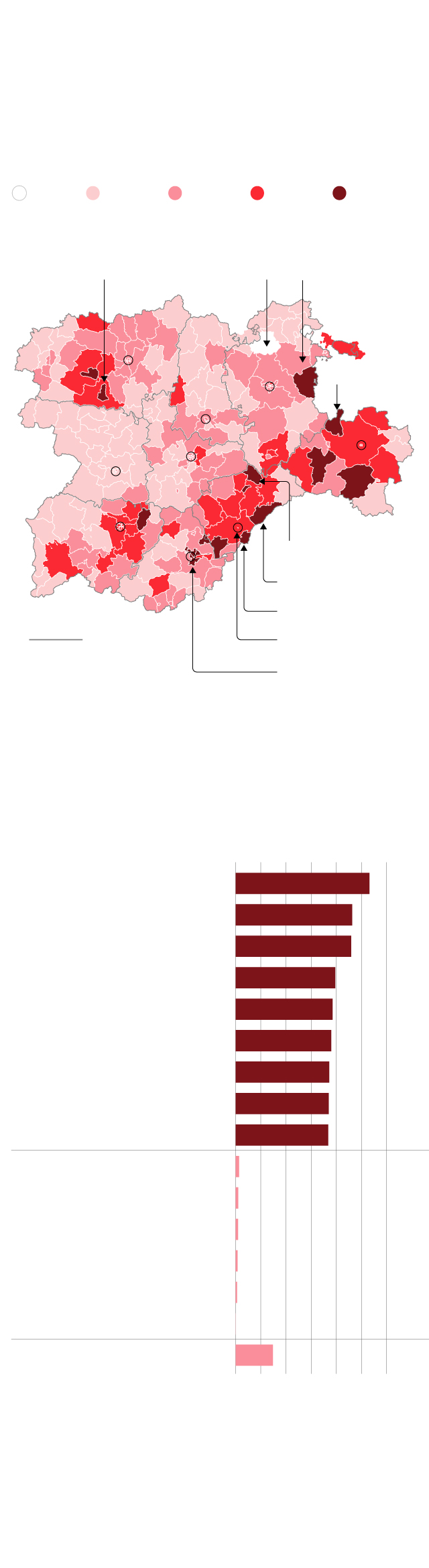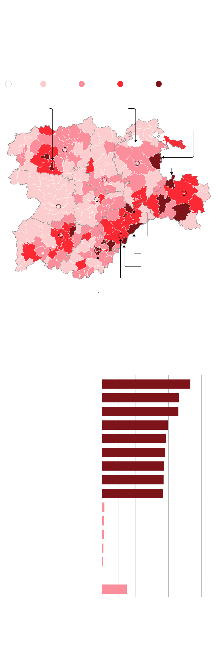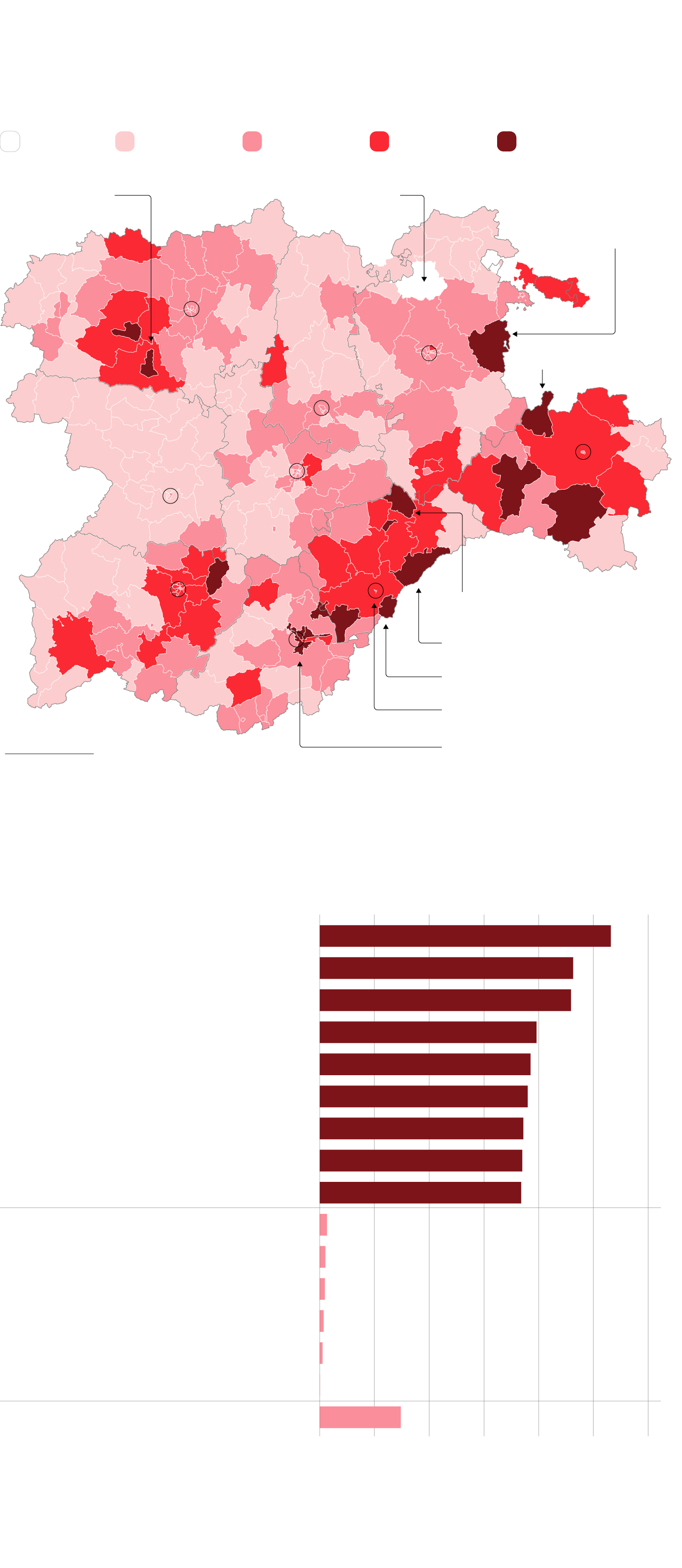 Áreas sanitarias más y menos afectadas