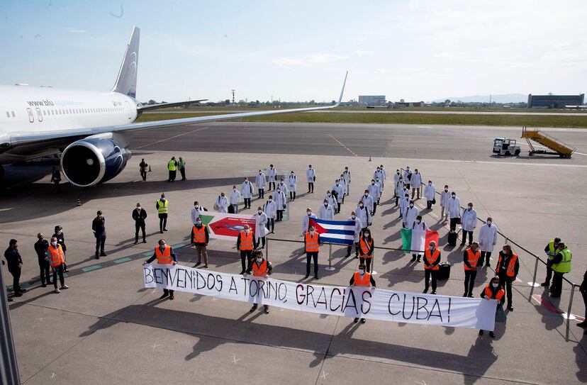 Mientras tanto, Cuba continúa con su política de diplomacia médica. Este lunes llegó a Italia una segunda brigada sanitaria, compuesta por 21 médicos y 17 enfermeras que trabajarán en Turín, una ciudad severamente afectada por la epidemia. El equipo, integrado por especialistas en terapia intensiva, epidemiólogos, neumólogos y médicos integrales, se suma al contingente de 53 sanitarios enviados a Lombardía a finales de marzo. La mayoría de los médicos y personal sanitario que integran la brigada ya han prestado servicio con anterioridad en situaciones de desastre y crisis sanitarias internacionales, incluido el brote de ébola en África.