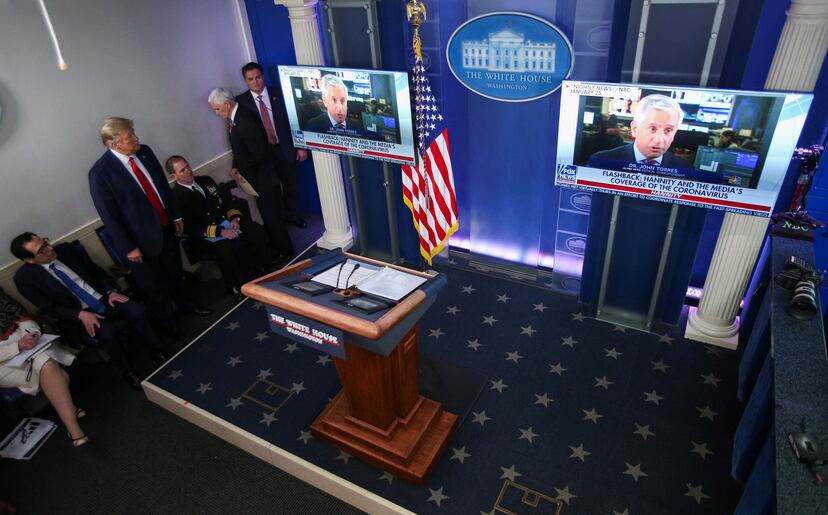 La hemeroteca es tan tozuda como los datos y da cuenta de los más de dos meses que tardó Donald Trump en hablar con seriedad de la pandemia de coronavirus, de cómo pasó de asegurar que todo estaba bajo control, a primeros de enero, a comparar, ya el 9 de marzo, la Covid-19 con la gripe común para justificar que nada debía cerrar por ella. En los últimos días, además, varios medios han hecho repaso de todas las semanas perdidas. El pasado fin de semana, The New York Times publicó un artículo sobre cómo las voces de alarma de algunos expertos -recogidas en las largas cadenas de correos electrónicos- fueron ignoradas por las autoridades sanitarias durante seis semanas. El domingo, además, el epidemiólogo Anthony Fauci, director del Instituto Nacional de Enfermedades Infecciosas y hombre del grupo de crisis formado, admitió que “si las medidas [de confinamiento] hubiesen empezado antes, se hubiesen salvado más vidas”.
