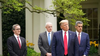 El magnate ha comparecido en los jardines de la Casa Blanca en otra de las largas ruedas de prensa diarias que ofrece sobre la pandemia con el objetivo, sobre todo, de defender su gestión de la pandemia ante todas las críticas. En esas comparecencias ofrece pocos datos sombríos (como los más de 605.000 contagiados y más de 25.000 muertos que acumula Estados Unidos), pero deja frases para la historia, como cuando este lunes se arrogó “autoridad total”, sobre los Estados, en la hoja de ruta de la vuelta a la normalidad, toda una provocación para el sacrosanto sistema federal concebido en la Constitución de EE UU.