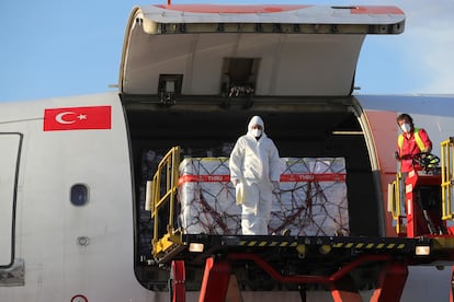La situación de conflicto de intereses que se presenta ahora entre España e Israel es casi idéntica a la que se produjo hace unas semanas con una partida de respiradores procedentes de Turquía. Entonces fueron las comunidades de Navarra y Castilla-La Mancha las que habían comprado 116 respiradores, que la aduana turca retuvo porque su Gobierno había revocado las licencias de exportación para esos equipos.