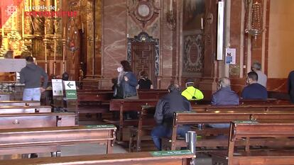 La misma limitación de aforo que en las tiendas rige en los actos religiosos. En la iglesia de Nuestra Señora de los Desamparados, en Vitoria, los feligreses han entrado a primera hora de esta mañana guardando las distancias, sin aglomeraciones, y en el interior se han colocado con la máxima distancia posible entre ellos. A punto de dar las doce del mediodía, Pilar es la segunda vez que acude a la basílica del Gran Poder de Sevilla este lunes. “He venido a la misa de las nueve y ahora a traer mascarillas porque ya no quedaban”, explica. Esta iglesia, como la de La Macarena, no ha parado de recibir devotos desde primera hora. Han reducido a un tercio su aforo, tienen los asientos de los bancos donde se pueden sentar los fieles perfectamente delimitados y dispensadores de gel en las entradas. En algunos momentos se han formado colas para entrar, pero el paso ha sido fluido.