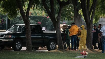 El entierro fue rápido. Sin flores ni mariachis, como se acostumbra en Nicaragua. El ataúd llegó pasada las siete de la noche al panteón Sierras de Paz, un horario nocturno nada usual para un entierro. El féretro fue recibido por sepultureros ataviados también en trajes de protección, quienes en menos de media hora cumplieron su misión. Fue un “entierro exprés”.
