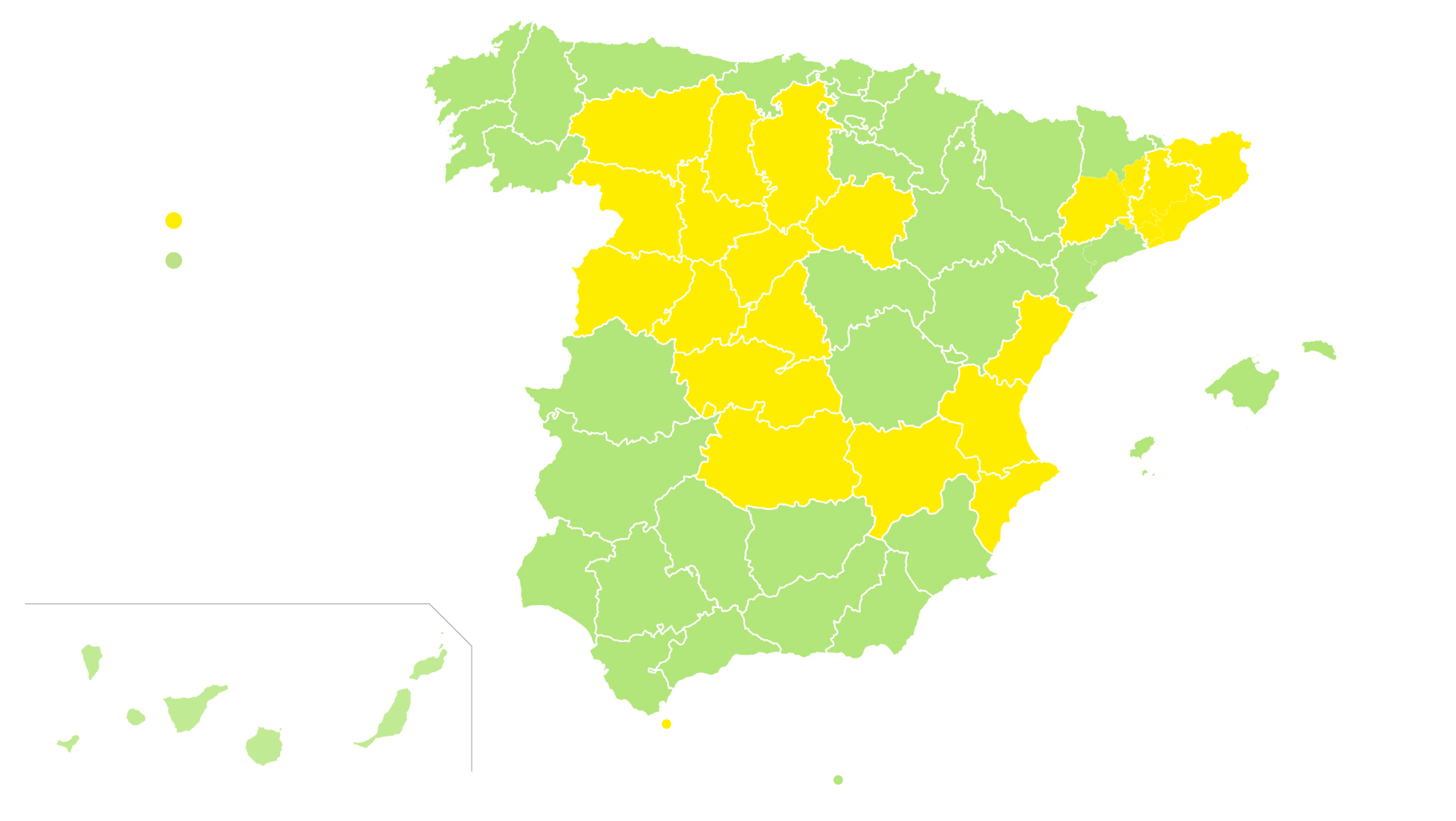 La situación se rige por la norma que estableció desde el inicio el Ministerio de Sanidad: un mínimo de dos semanas en cada fase, con la excepción de Málaga y Granada, que en una semana han pasado de fase 2 a fase 3. Con ello, España queda dividida en dos. 23 millones en la etapa más retrasada y 24 millones en la más avanzada. Quedan por completo en la fase 3 Andalucía, Aragón, Asturias, Baleares, Canarias, Cantabria, Galicia, Extremadura, La Rioja, Melilla, Murcia, Navarra y el País Vasco. El resto estará total o parcialmente (casos de Castilla-La Mancha y Cataluña) en la fase 2.