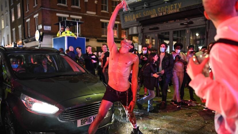 Los primeros cálculos estiman que en la noche del sábado circularon cerca de 15 millones de pintas (casi medio litro de cerveza) por toda Inglaterra. Y los diarios mostraron abundantes fotos en su edición de la mañana siguiente con gente abrazándose por las calles, algún careo con la policía y abundante personal tumbado en la acera con una melopea notable. “Acabo de regresar a casa después de un largo turno de noche en el que hemos tenidos peleas en pubs, violencia doméstica y borrachos tontos medio inconscientes. Si lo de hoy tiene algo que ver con una posible segunda ola del virus, no creo que tarde mucho en llegar”, tuiteaba el sargento de policía del departamento de las West Midlands, Richard Cooke. “Hombres desnudos, borrachos felices, borrachos irritados, peleas y más borrachos irritados. Todo esto durante mi servicio de noche en Southampton”, escribía John Apter, el presidente de la Federación de Policías.