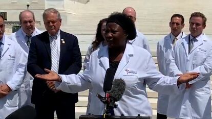 El vídeo que comenzó el debate fue publicado originalmente por la organización America’s Frontline Doctors. Trump lo retuiteó la noche del lunes y Twitter lo retiró varias horas después. En casi 30 minutos de duración, el mensaje aseguraba que el uso de las mascarillas y las medidas de confinamiento tomadas en algunas ciudades no ayudaban a frenar los contagios.