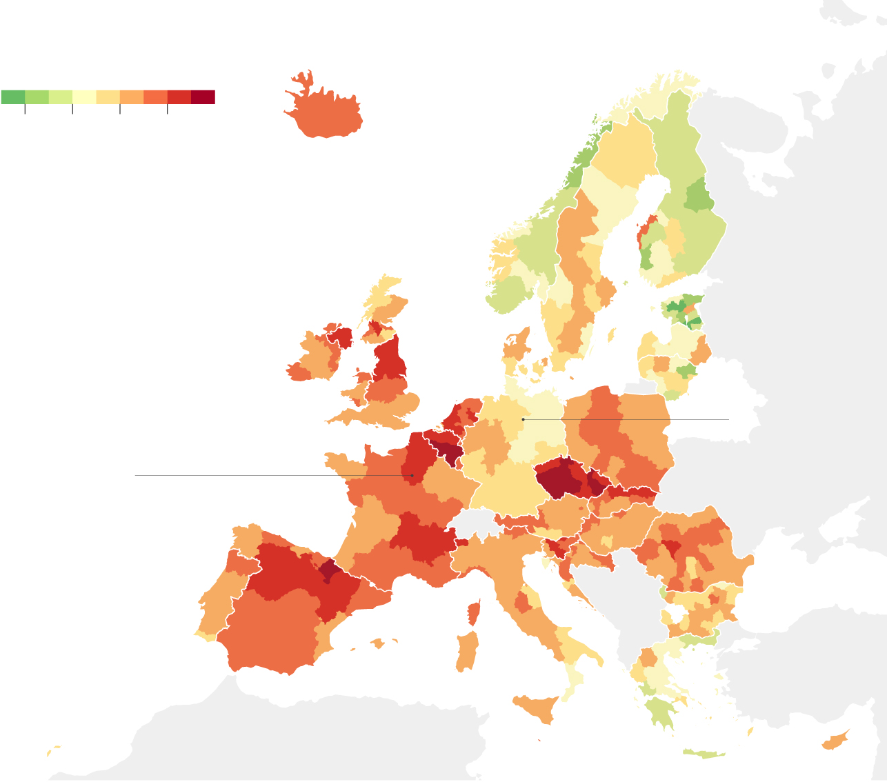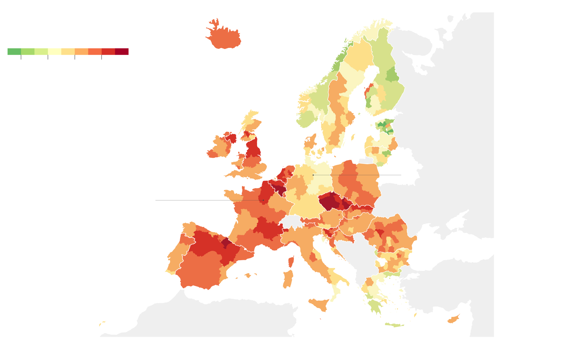 La situación de Bélgica también es muy complicada, con una incidencia de 1.424 infecciones, la segunda más alta. Las autoridades belgas han avisado de que el país podría quedarse sin camas de cuidados intensivos en apenas dos semanas y reconocen que algunos hospitales no tienen suficiente personal. Las operaciones y visitas no urgentes se están suspendiendo. El país está sumando unos 13.000 casos nuevos cada día. Un hospital de Lieja, cerca de la frontera con Holanda, ha pedido a su personal de enfermería positivo en coronavirus pero asintomático que siga trabajando, según ha publicado Euronews. La vecina Holanda, con 711 casos por 100.000 habitantes, ha empezado a enviar pacientes a Alemania, como ya hizo durante la primera ola, informa Isabel Ferrer. Los ingresos de pacientes con coronavirus crecieron un 17% la semana pasada respecto a la anterior, un porcentaje similar al incremento de las UCI (16%), que indica un crecimiento muy rápido.