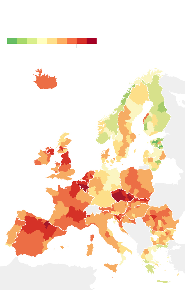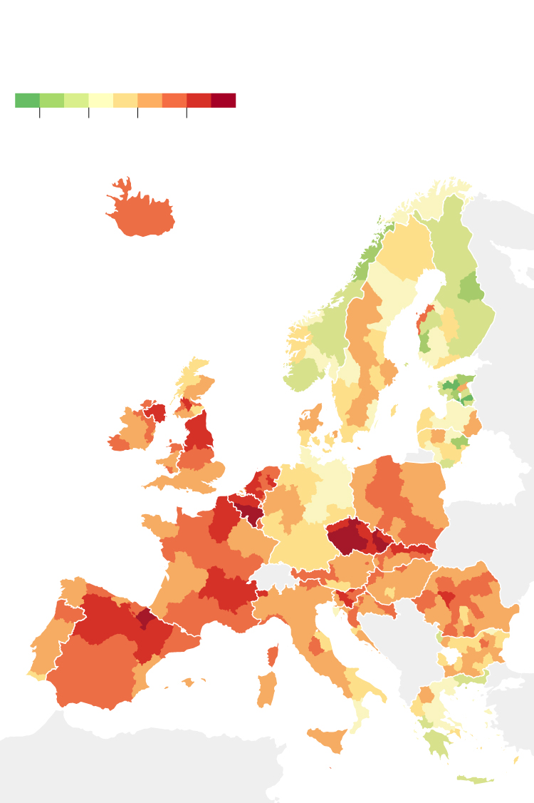 Francia y Alemania, en mejor situación que muchos de sus vecinos, tomaron nuevas medidas el miércoles ante el miedo al colapso hospitalario. Alemania, con una incidencia de 156 según el ECDC, anunció un cierre de un mes de la hostelería, cines, gimnasios y hoteles para turismo. En Francia (incidencia de 660) el número de pacientes hospitalizados crece muy rápido. El martes había 18.978 personas con coronavirus ingresadas y 2.918 en la UCI. El 12 de octubre eran 1.548, es decir, en dos semanas las camas ocupadas de críticos se han doblado.