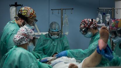 Una cuarta parte de las UCI españolas están ocupadas por pacientes con covid-19. EL PAÍS entra en dos unidades, en Madrid y Barcelona, que bordean el colapso