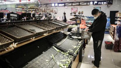 El cerco provoca que mucha gente ponga rumbo a supermercados y centros comerciales, en busca de productos con los que aprovisionar sus despensas ante un cierre que todavía no tiene fecha de caducidad. Imágenes compartidas en redes sociales muestran peleas en la sección de frutería, cajas vacías en los congelados. En los estantes de la pequeña tienda de alimentación que regenta Shenglong, no obstante, no falta de nada. En su caso, la concurrencia ya ha pasado. “Hoy solo han venido diez clientes, pero ayer y anteayer la gente no paraba de entrar”, apunta, “se llevaban, sobre todo, bidones de agua, cuanto más grandes, mejor”.
