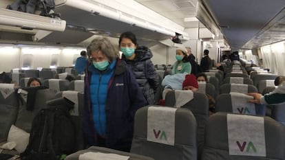 Los 21 españoles que estaban en el epicentro del coronavirus, entre ellos un reportero de EL PAÍS, han aterrizado en Madrid más de 16 horas después de salir de esta ciudad china