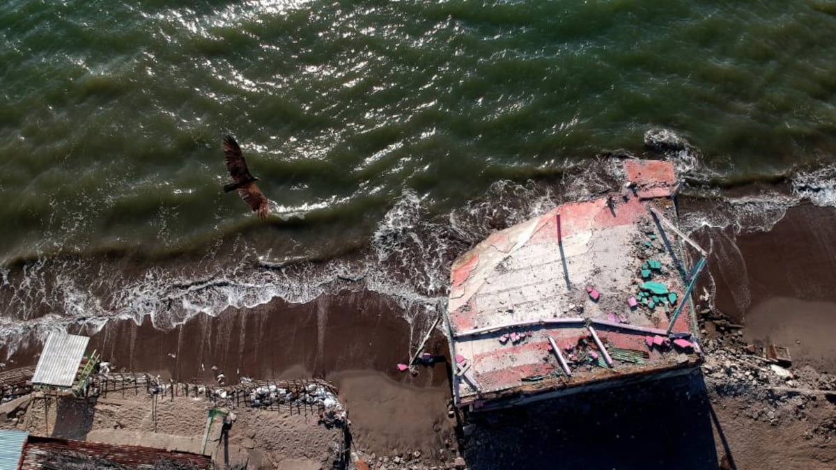 Mientras tanto, un día más, doña Glenda Zamora vuelve a amontonar en su modesto restaurante una bolsa, luego otra y otra más. Trata de frenar el agua con sacos rellenos de arena como se hace junto a los ríos que se desbordan. Pero ella lucha contra el mar. Su humilde tasca, donde fríe pescado a los lugareños y a algún turista despistado, sí o sí será engullido en pocos meses. Hace cinco años su local tenía el salón y la terraza pero de aquello solo queda la mitad. Primero llegó el agua, dos años después ya cubría los pilares y poco después se desmoronó la techumbre. “Ahora solo estoy esperando unos meses, a que el mar termine con todo, para irme para siempre de aquí”.