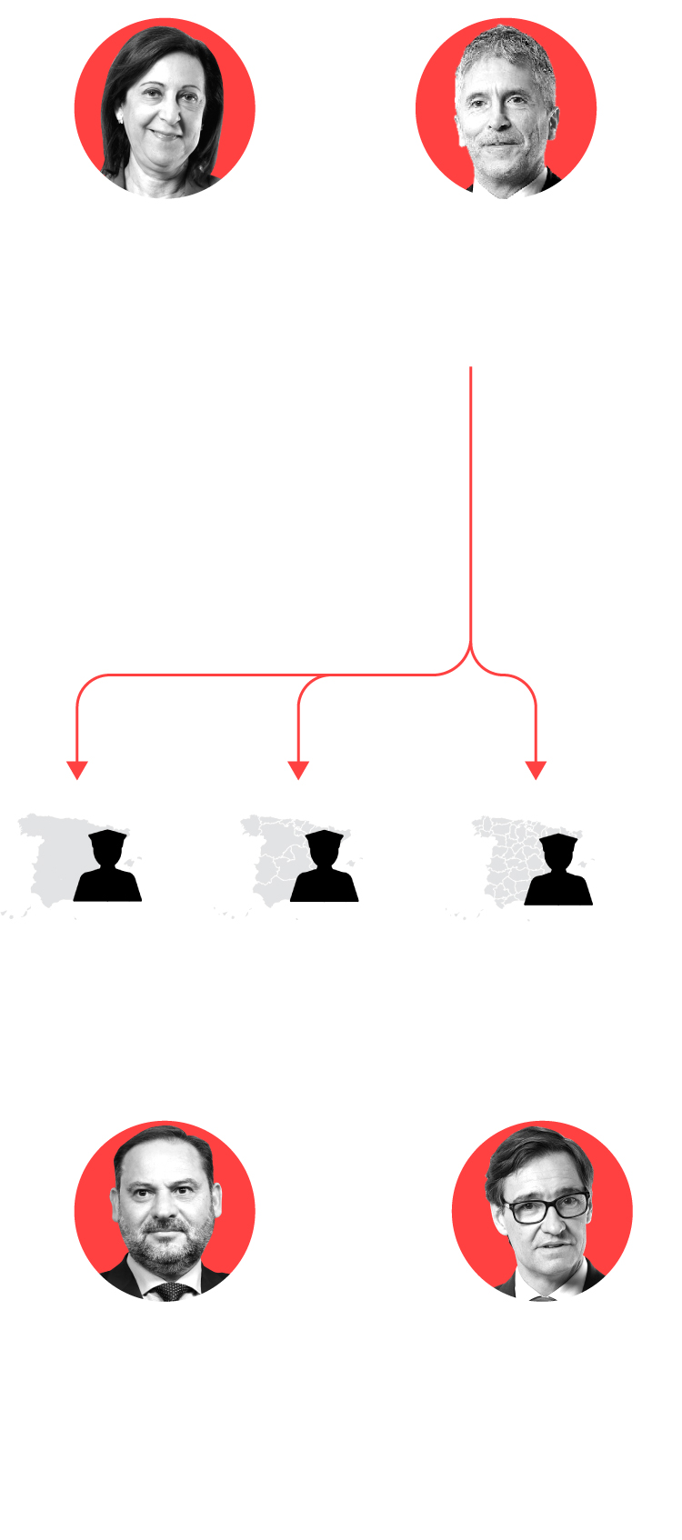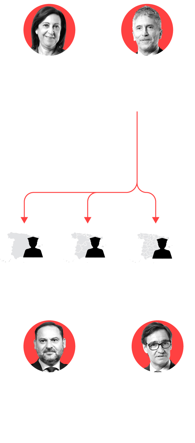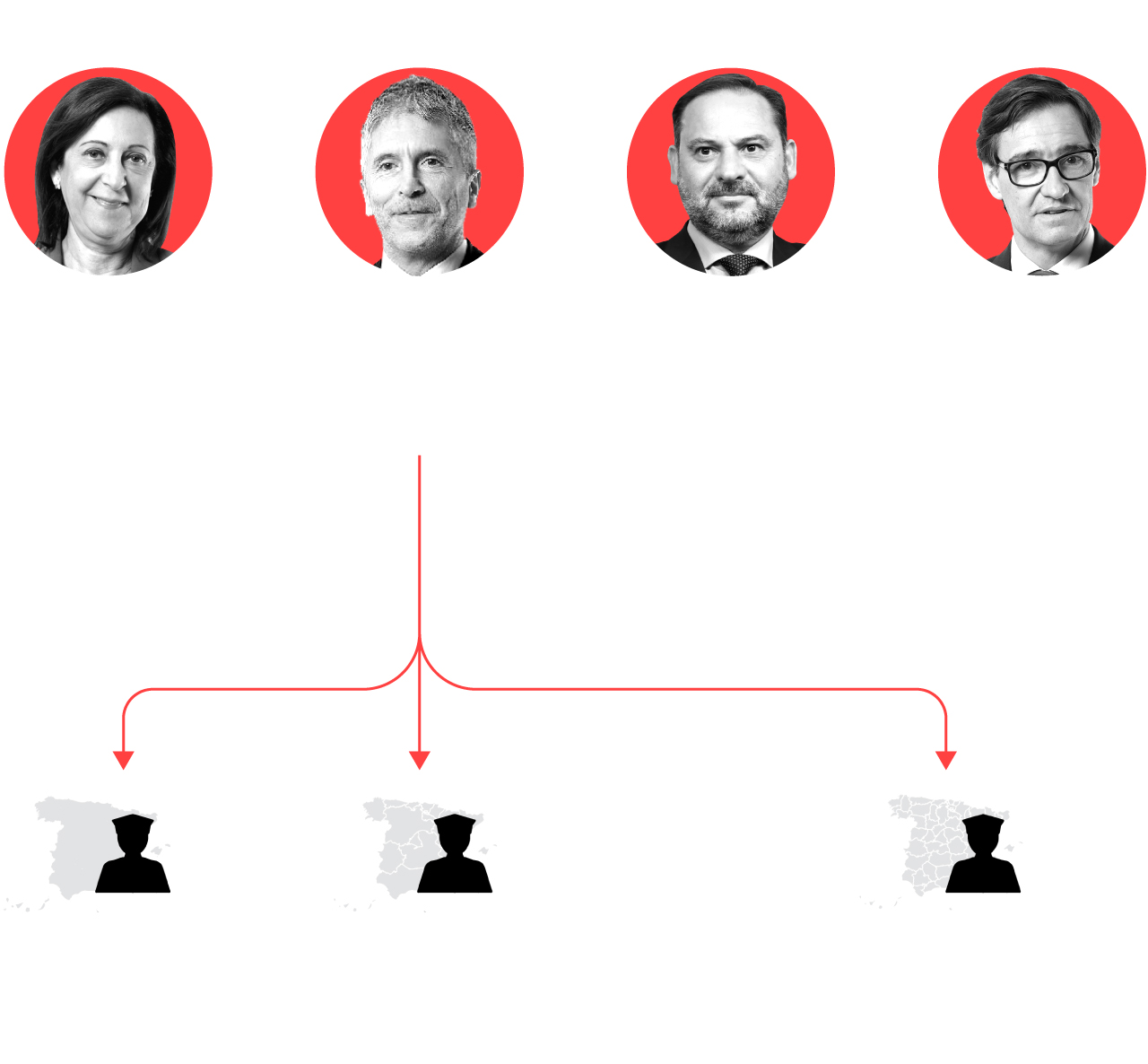 Todas las fuerzas de seguridad quedarán bajo las órdenes directas del titular del Ministerio del Interior.