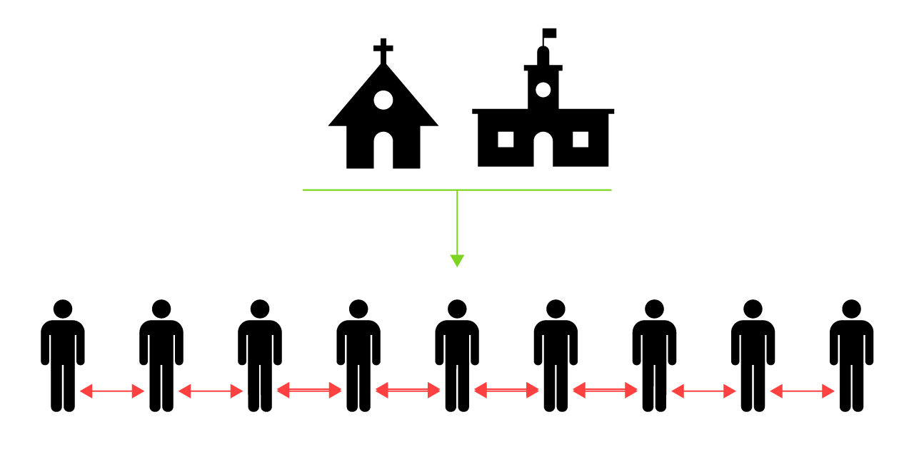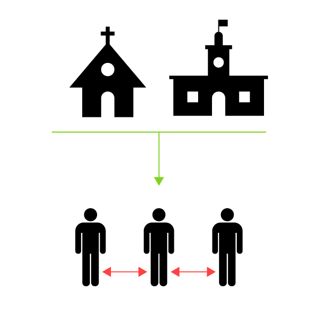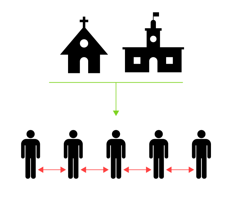 Las ceremonias civiles, religiosas y los actos en lugares de culto, incluidos los fúnebres, se condicionan a que los lugares impidan las aglomeraciones y permitan la asistencia de personas manteniendo la distancia de un metro entre ellas.