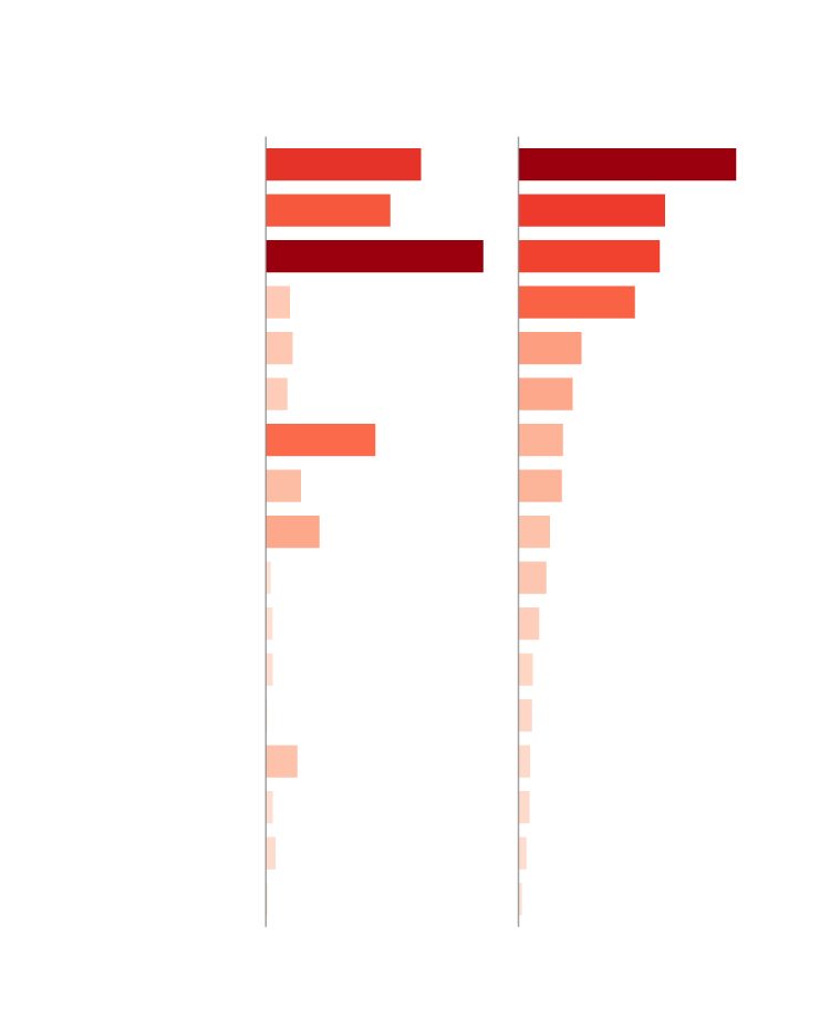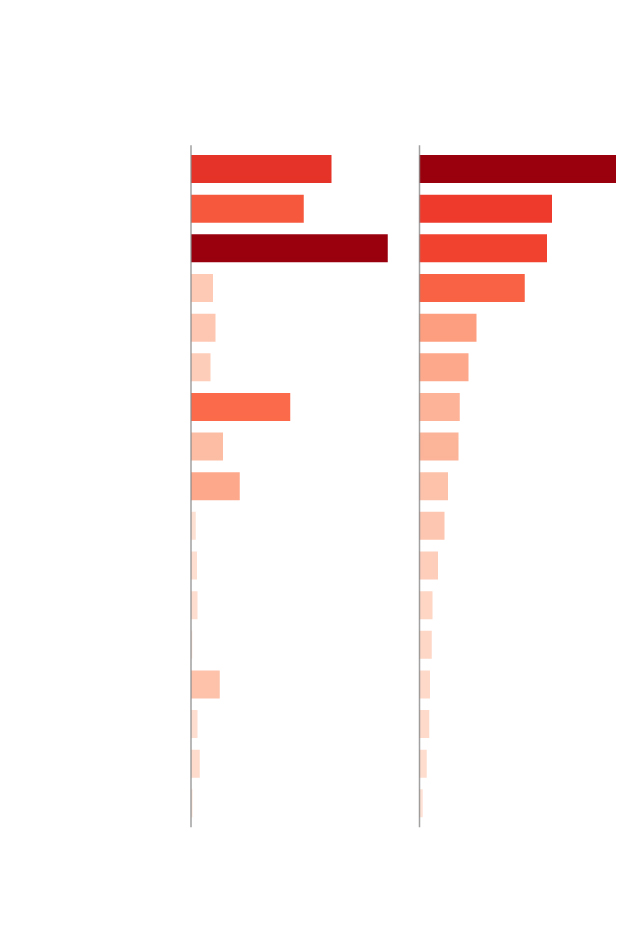 El gráfico a continuación compara el exceso de fallecimientos observado por MoMo en cada comunidad y las muertes confirmadas de personas con Covid. Hay diferencias notables: en Castilla-La Mancha o Castilla y León el exceso de muertes es muy superior a las muertes de Covid confirmadas, mientras que en Madrid o Cataluña ocurre al revés. Pero estas diferencias pueden estar reflejando desajustes temporales en los registros civiles.
