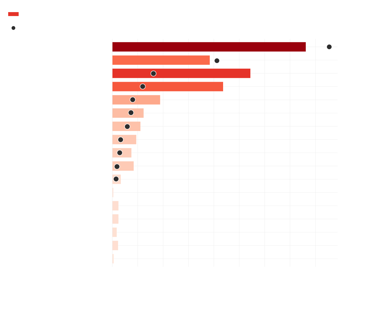 Las cuatro regiones con el mayor exceso absoluto, y uno de los peores en relativo, son las mismas donde se han registrado más casos de Covid-19: Madrid, Castilla-La Mancha, Cataluña y Castilla y León. También destaca Navarra en términos relativos. Esta comparativa es en cierto grado provisional. Como hemos dicho antes, la notificación de algunas CC AA, como La Rioja o la Comunidad de Madrid parecen ir con retraso.